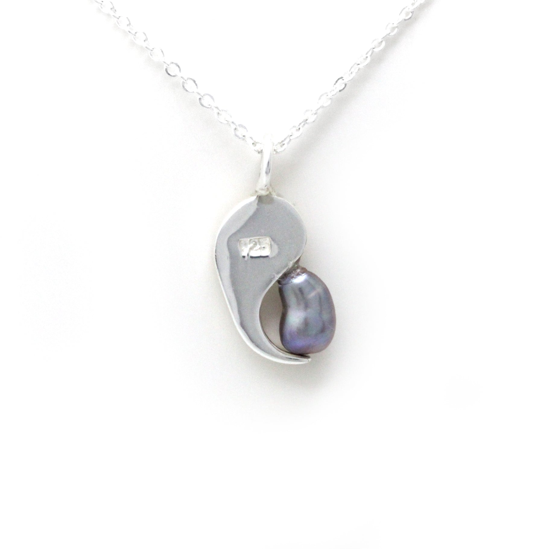 Este dije está hecho en plata esterlina mexicana (0.925), un diseño sútil ideal para quienes prefieren portar perlas con delicadeza y sofisticación. Lo más especial en esta pieza es la perla keshi que tiene, ya que este tipo de perla es lo más cercano a una perla natural, ya que no contiene núcleo (perla de cultivo), es sólo cubrimiento de nácar, además, tiene una interesane forma alargada e intensos y tornasolados colores.
