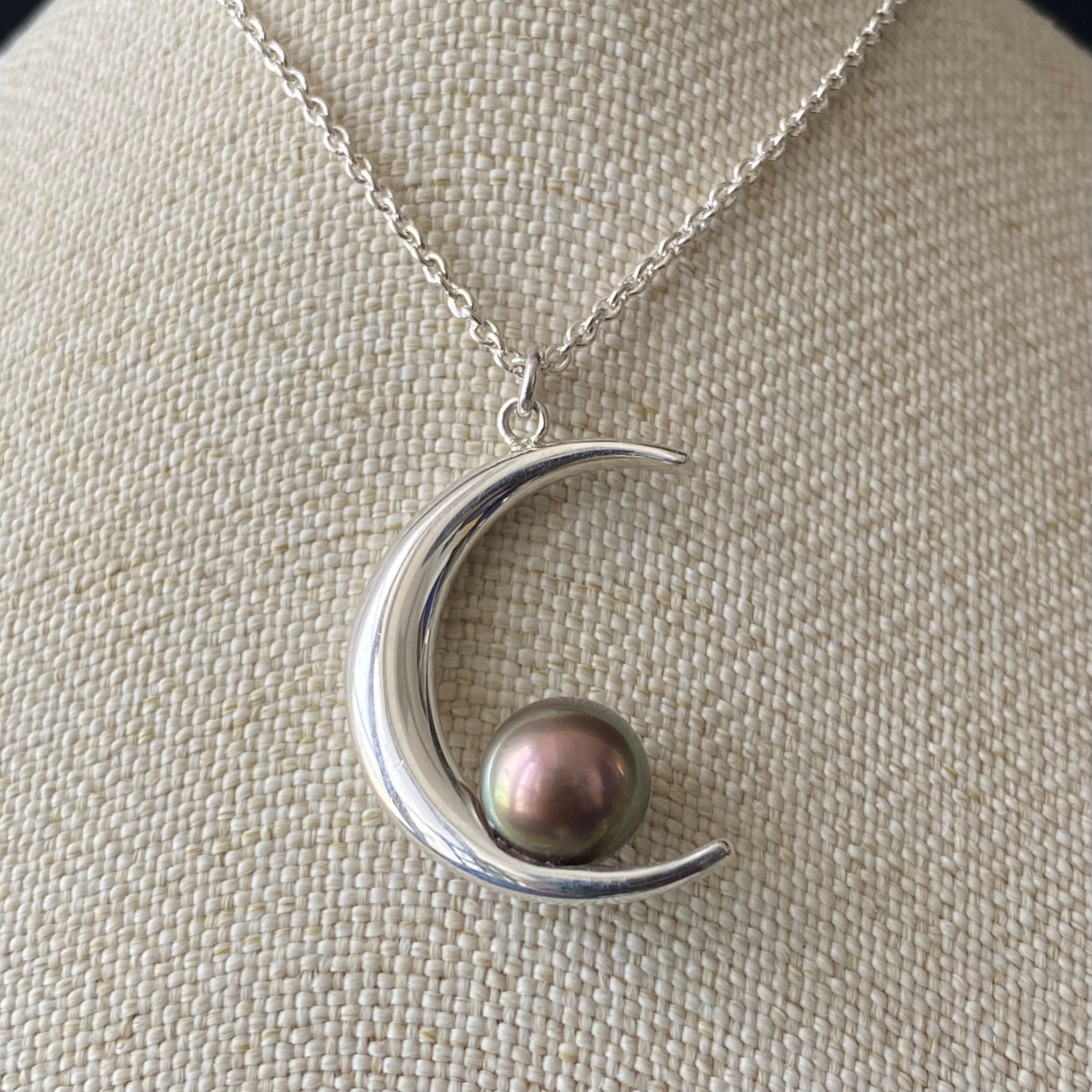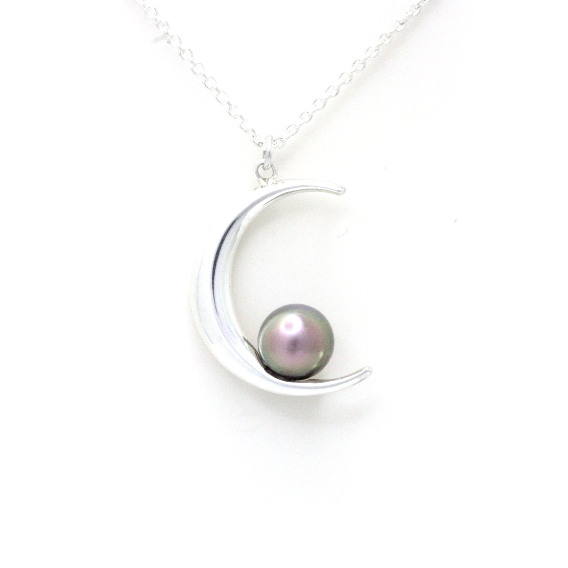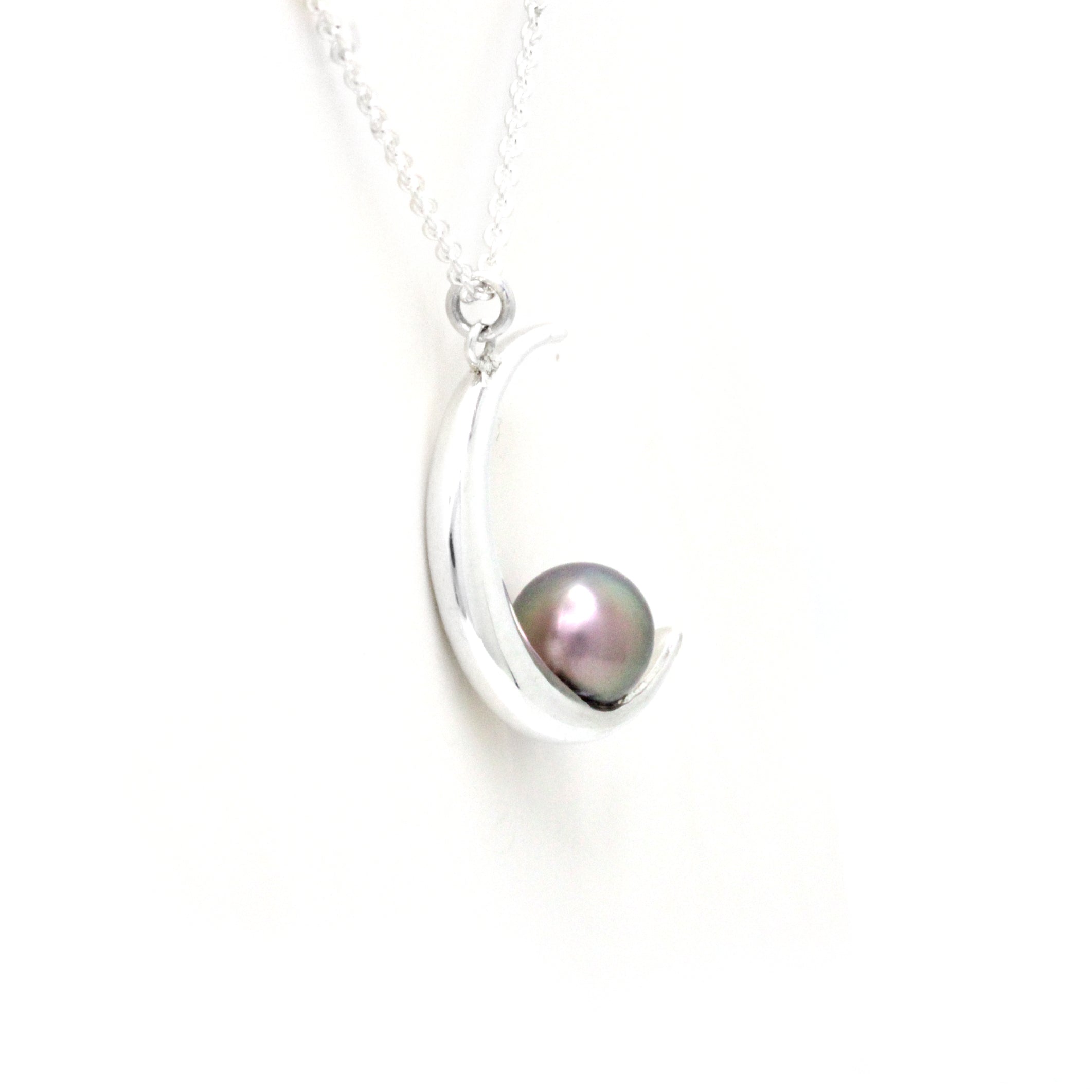 "Moon" Silver Necklace with Cortez Pearl by "Noble Sensación"